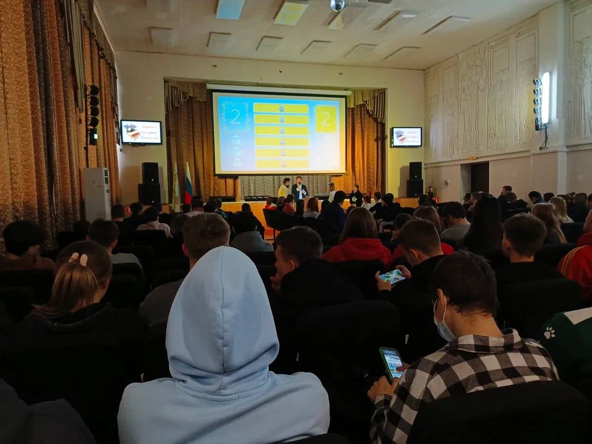 🎊 После награждения студентов ждала интерактивная игра по мотивам известного ТВ-шоу «100к1», в которой за поиск наиболее популярных ответов соревновались более 250 участников! Игра состояла из 5 туров и завершилась «дуэлью»капитанов! Все команды были награждены сладкими призами!