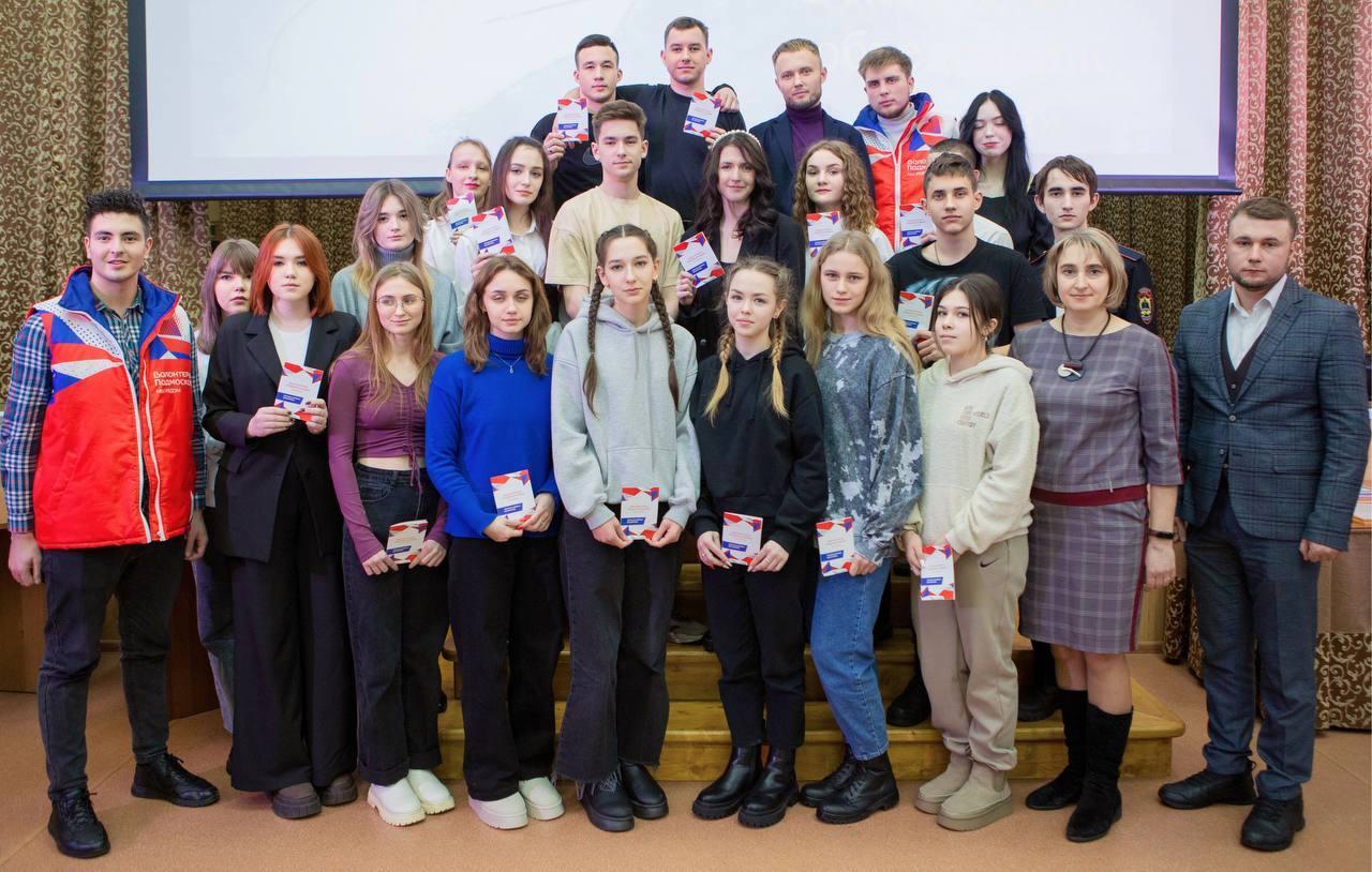 В этот день в Дмитровском институте непрерывного образования (ДИНО) сотрудники Комплексного молодежного центра «Сфера» поздравили студентов, состоящих в волонтерском объединении «Искра», и торжественно вручили благодарственные письма от Управления культуры, туризма и работы с молодежью Дмитровского городского округа, а также волонтерские книжки Волонтеров Подмосковья.