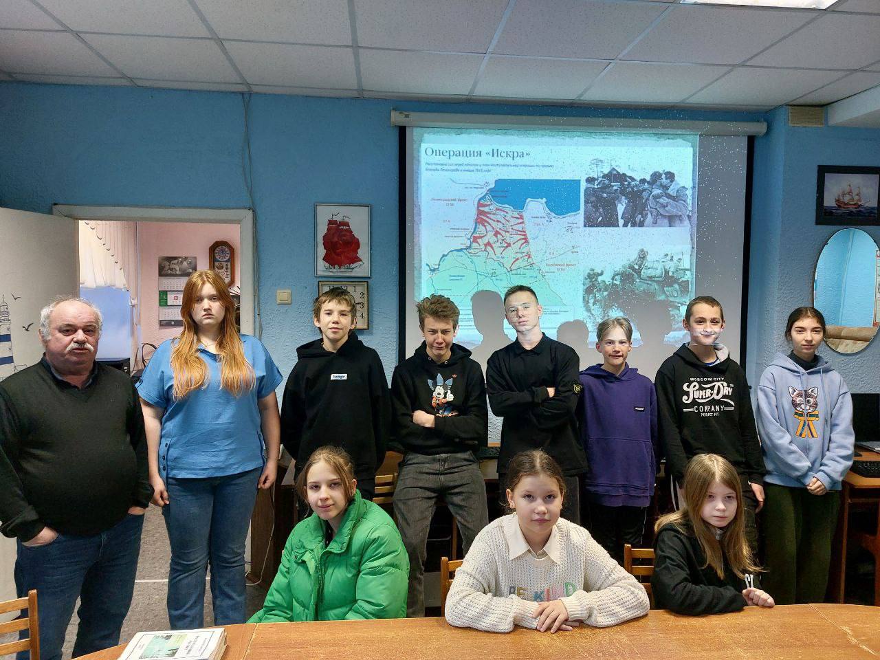 В «Клубе юных моряков имени Максима Сафонова» прошло занятие по теме: «Снятие блокады Ленинграда — триумф стойкости и мужества жителей и защитников города. Операция «Искра» с 12 января по 30 января 1943 года».