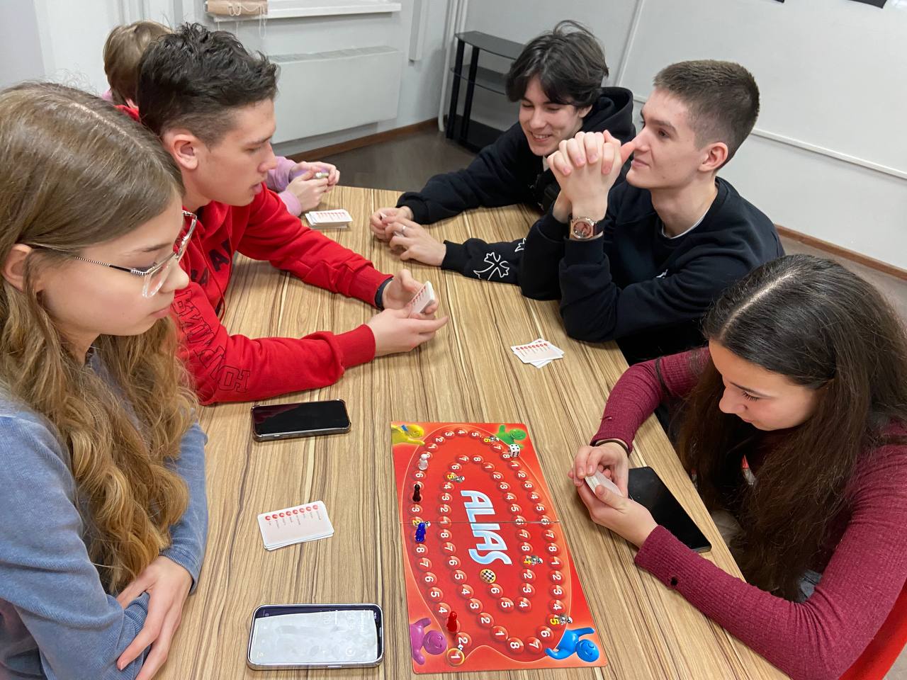 В этот раз ребят увлекла игра «Alias», в которой участники объясняют написанные в карточке слова, используя синонимы, антонимы или описывая ассоциации.