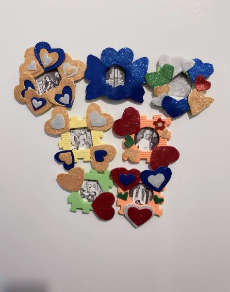 На мастер-классе ребята вырезали заготовки сердечек разных размеров из фоамирана. Композицию из сердечек все сделали по своему вкусу. После того, как сердечки наклеили на основание рамки, подготовили и распечатали фото и разместили их в готовой рамочке. Магниты с самоклеющейся основой легко разместили на обратной стороне работы.
