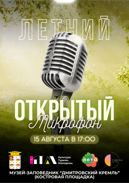 Проведи последний месяц лета нескучно! Приглашаем молодежь принять участие в полюбившемся дмитровчанами творческом проекте «Летний Открытый Микрофон»!