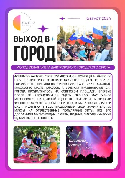 Ежемесячный выпуск молодежной газеты «Выход в город» №8 за август 2024 года.