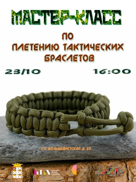 23 октября в 16:00 приглашаем всех желающих присоединиться к мастер-классу по плетению тактических браслетов, которые могут стать полезным аксессуаром для наших защитников.