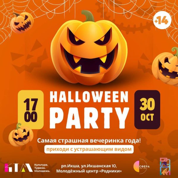 30 октября в Молодёжном центре «Родники» Комплексного молодёжного центра «Сфера» состоится незабываемая HALLOWEEN PARTY для молодёжи!