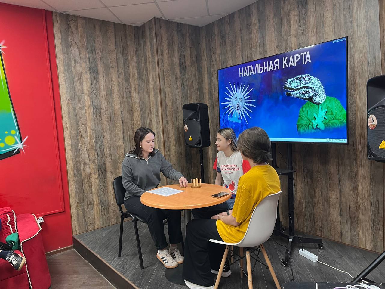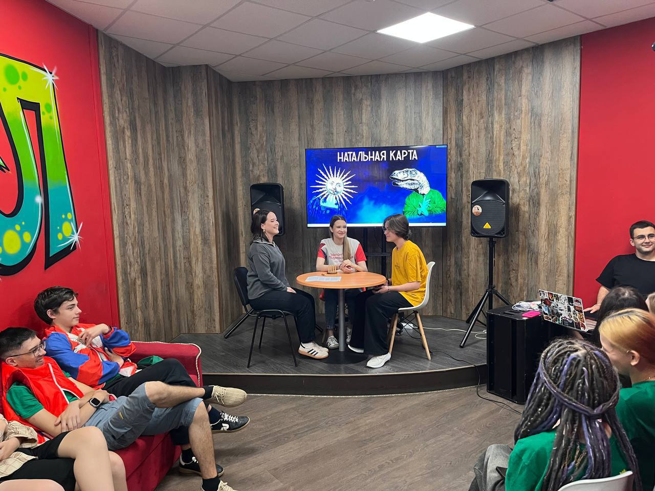 📅 В Молодёжном центре «квАРТал» при Комплексном молодёжном центре «Сфера» прошло яркое шоу «Натальная карта». Гостем программы стала наша новая сотрудница — Вероника, ведущий специалист по волонтёрству, которая с удовольствием погрузилась в атмосферу исследования своей личной астрологической карты.