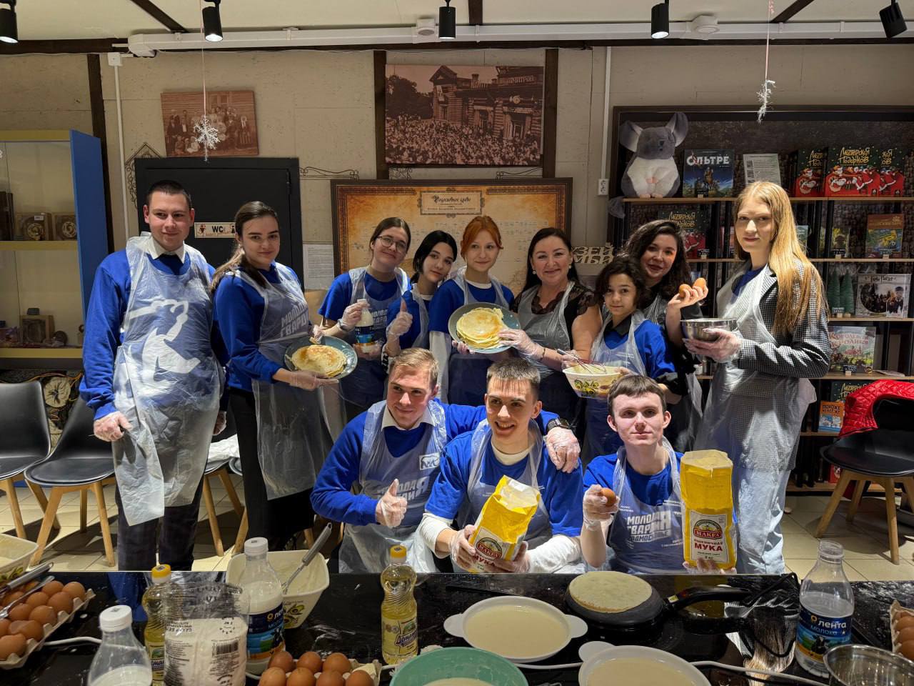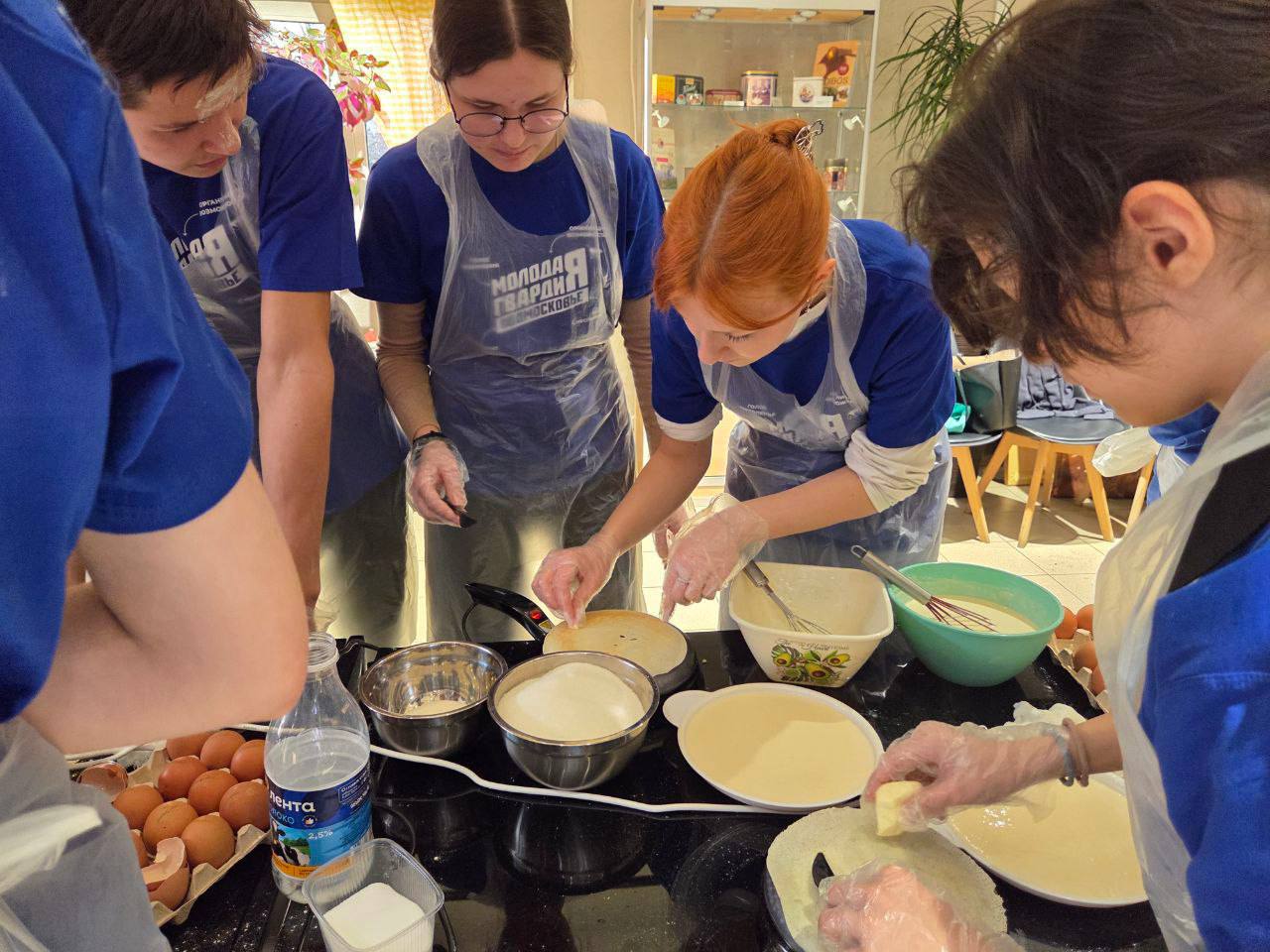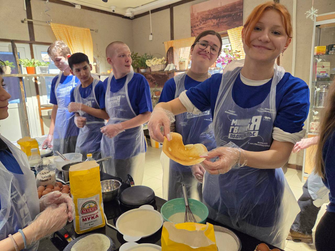🧑🍳 В домашней атмосфере семейного кафе «Косолапово» вместе с депутатом Московской областной думы Мариной Шевченко, руководителем «Молодой Гвардии Единой России» Дианой Алумянц и командой активистов, ребята приготовили около двухсот блинов, чтобы передать их героям.