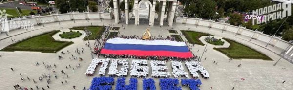🇷🇺 В этот день в Москве более 5 тысяч активистов Волонтёрской роты «БОЕВОГО БРАТСТВА» и «Молодой Гвардии» от «Единой России» выстроили огромный триколор и фразу: «Победа будет за нами».