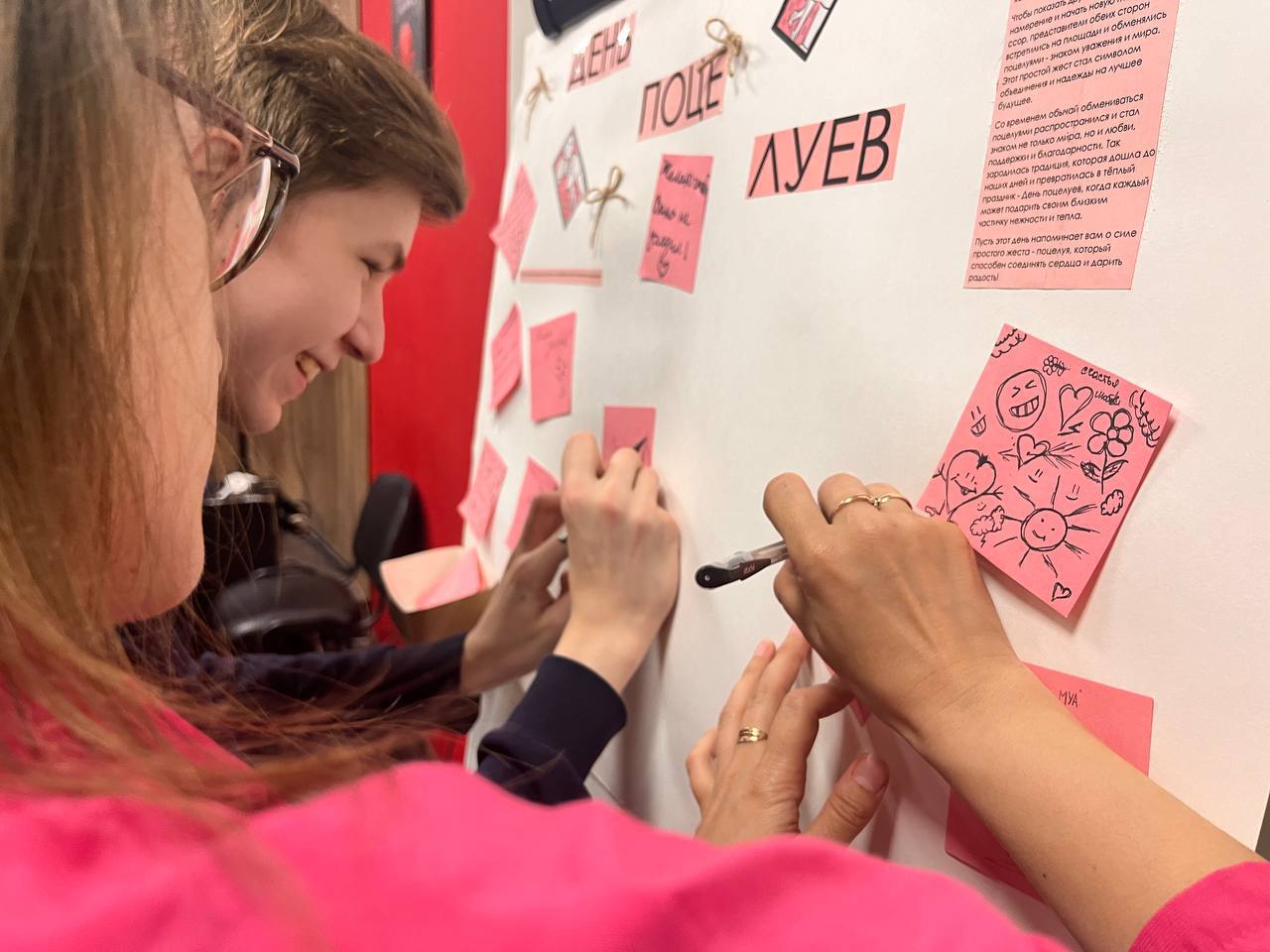 😊 В этот день ребята смогли погрузиться в атмосферу добра, улыбок и позитивных эмоций. Особое внимание привлёк стенд, где каждый желающий мог оставить на стенде свой «поцелуй» в виде листочка с добрыми словами и приятными пожеланиями!