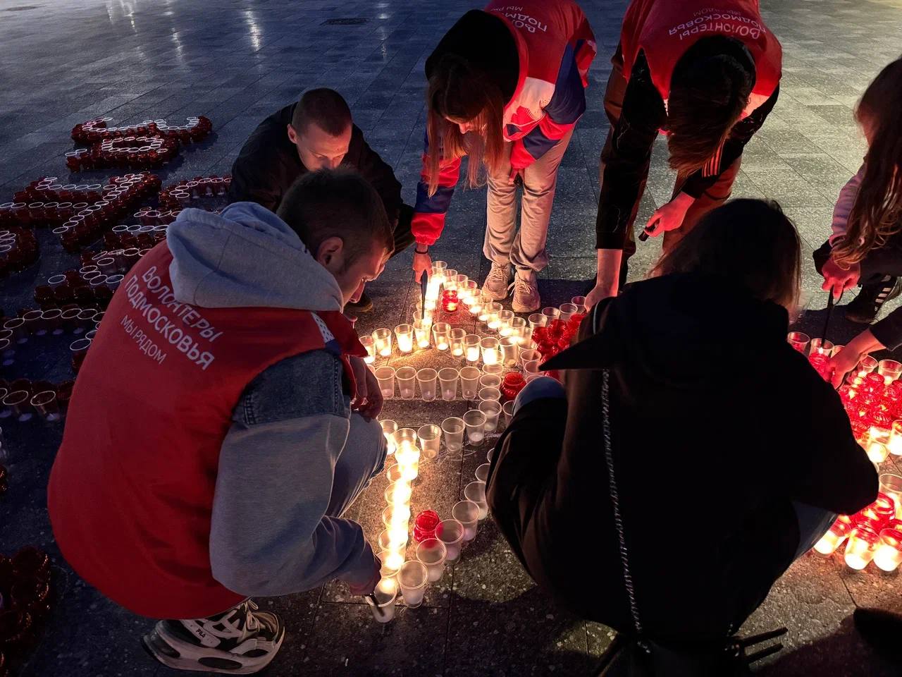 Активисты Комплексного Молодёжного центра «Сфера» и «Волонтёры Подмосковья» собрались вместе, чтобы зажечь свечи и вспомнить тех, кто не вернулся с полей сражений, кто сражался за наше будущее и отдал жизнь за Победу.