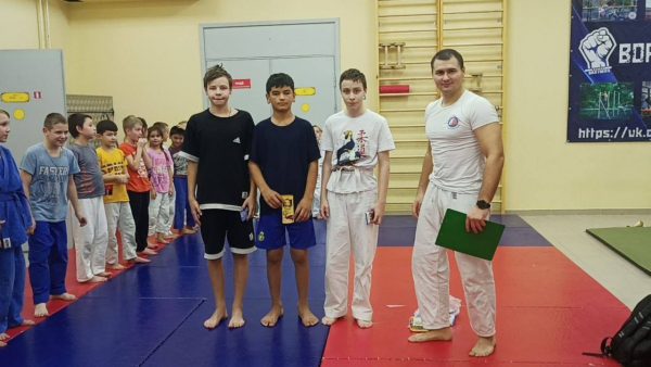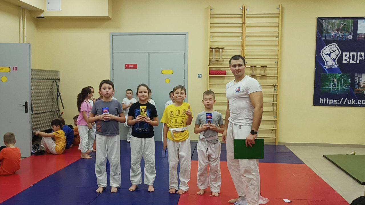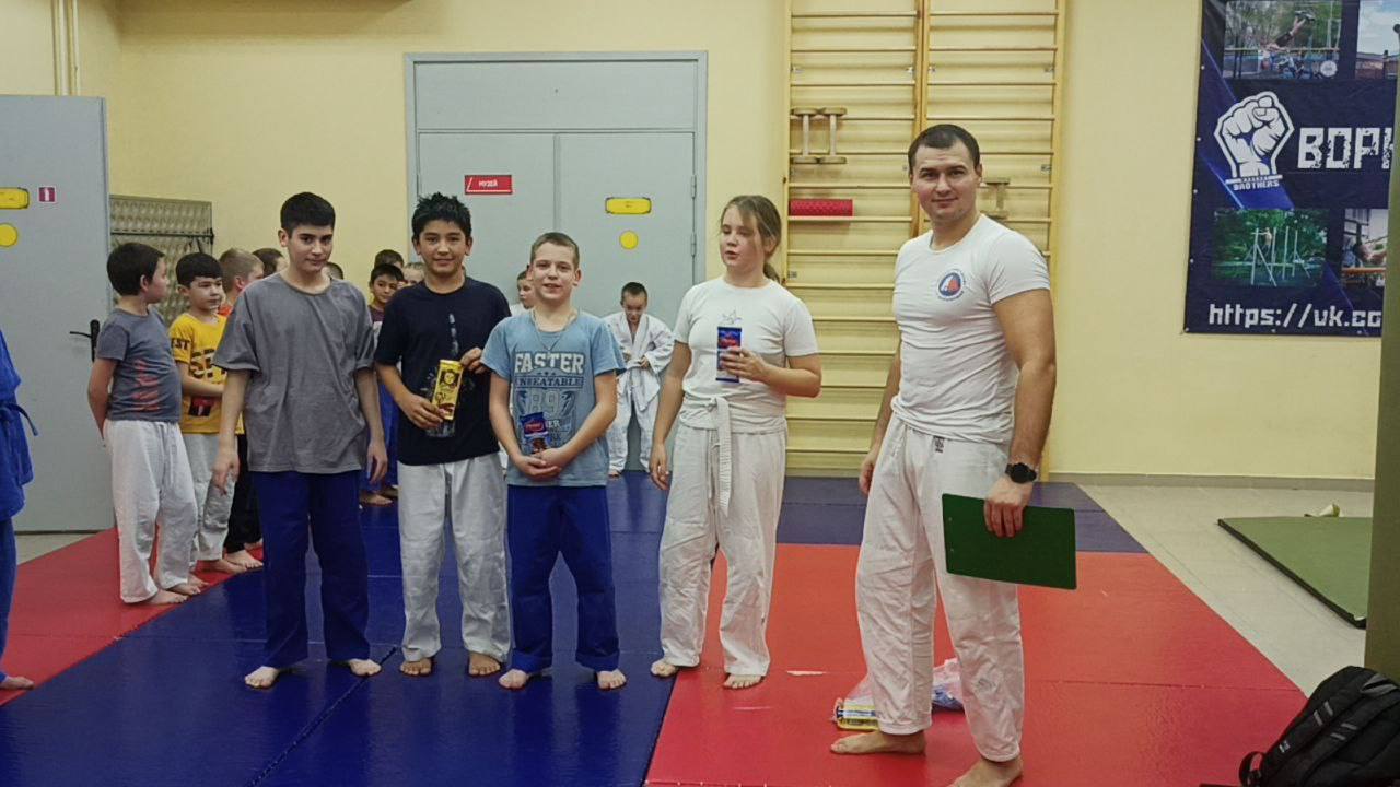 🥋После тщательной разминки юные дзюдоисты были разбиты на группы по 4 человека. Каждому участнику предстояло как можно быстрее вытащить поясок из-за спины соперника, чтобы стать победителем.
