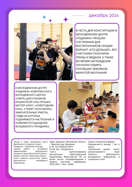 📰 Ежемесячный выпуск молодежной газеты «Выход в город» №12 за декабрь 2024 года.