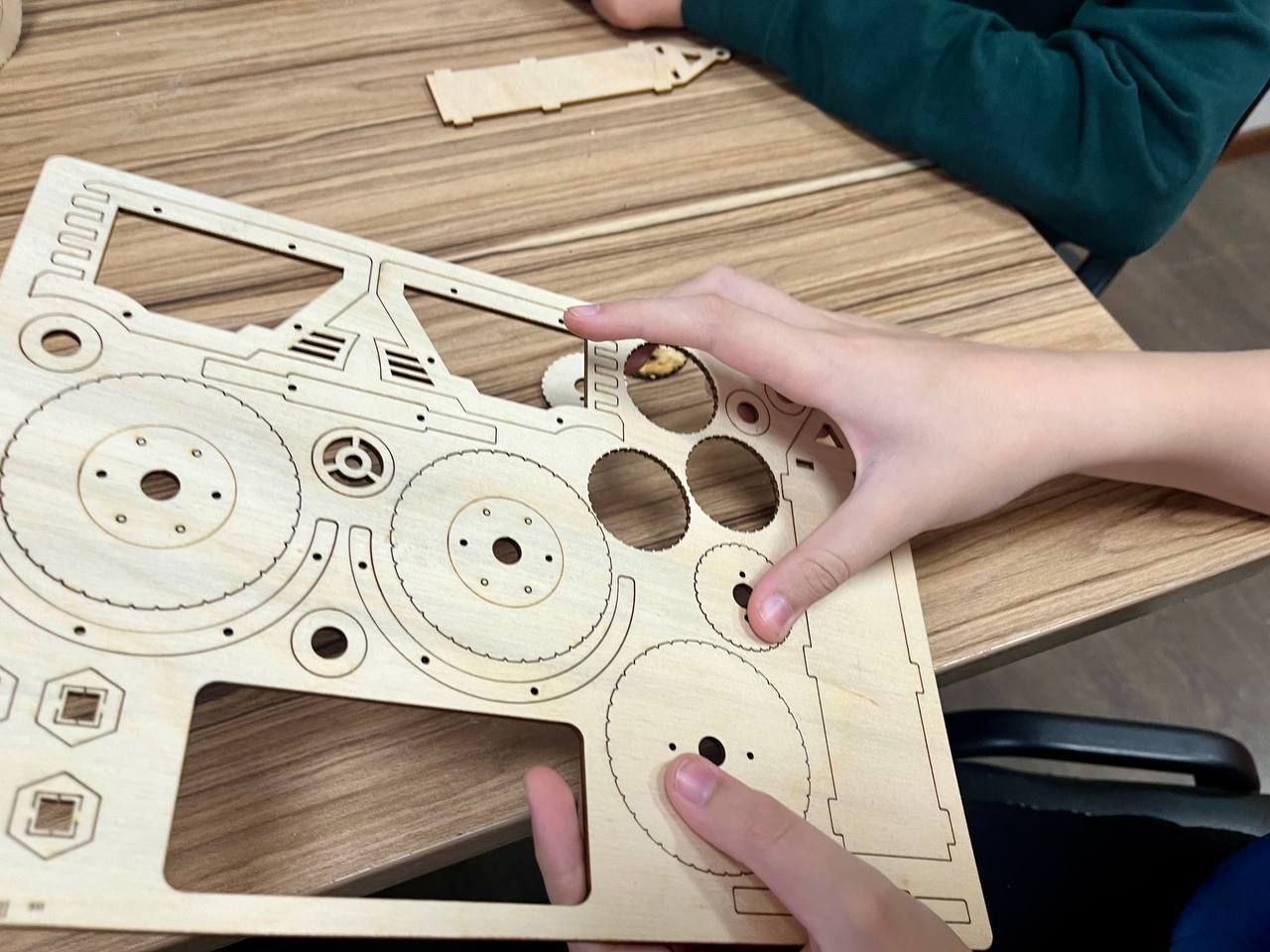 🚜 Юные мастера соединяли детали, превращая обычные кусочки фанеры в яркие и мощные тракторы.