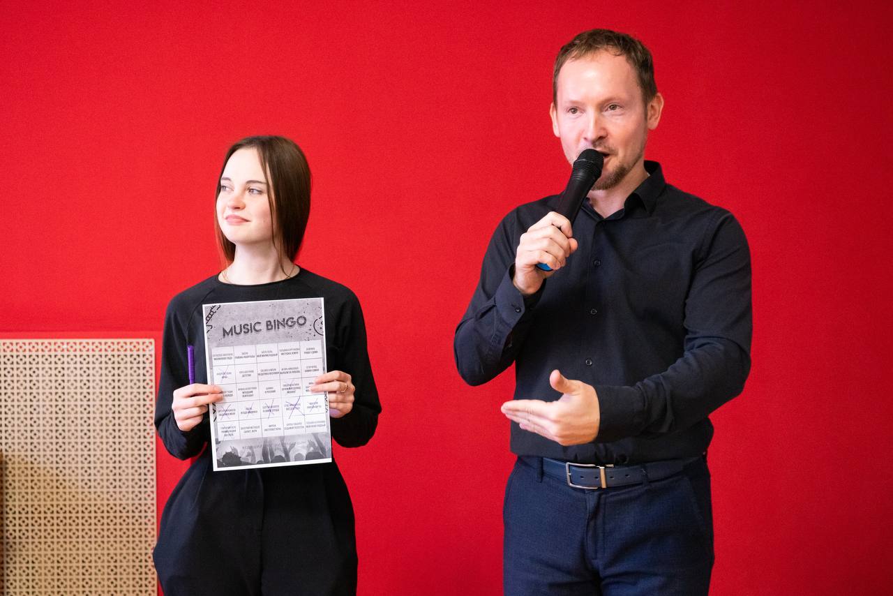 📝 Каждый игрок получил бинго-бланк с 25 популярными треками. Задача заключалась не просто в том, чтобы внимательно слушать музыку, но и исполнять каждую песню! А ещё — находить треки в своем бланке и отмечать их. Собрав несколько треков в определённом расположении, нужно было встать и громко крикнуть: «БИНГО!».