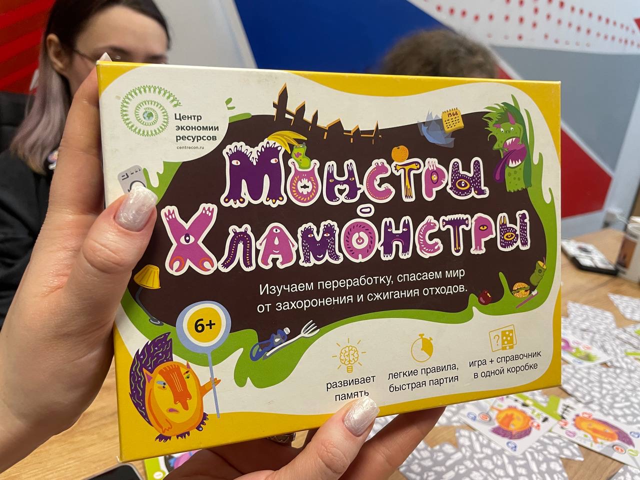 ✨ Команды сразились сразу в двух играх: динамичной «Ответь за 5 секунд», где важно успеть назвать 3 ответа до окончания таймера, и настольной экологической «Монстры-хламонстры», разработанной Центром экономии ресурсов. По легенде хламонстры растут, когда вещи отправляются на свалку или в печь, а победить их можно только сортировкой и переработкой — ловко, быстро и с умом.