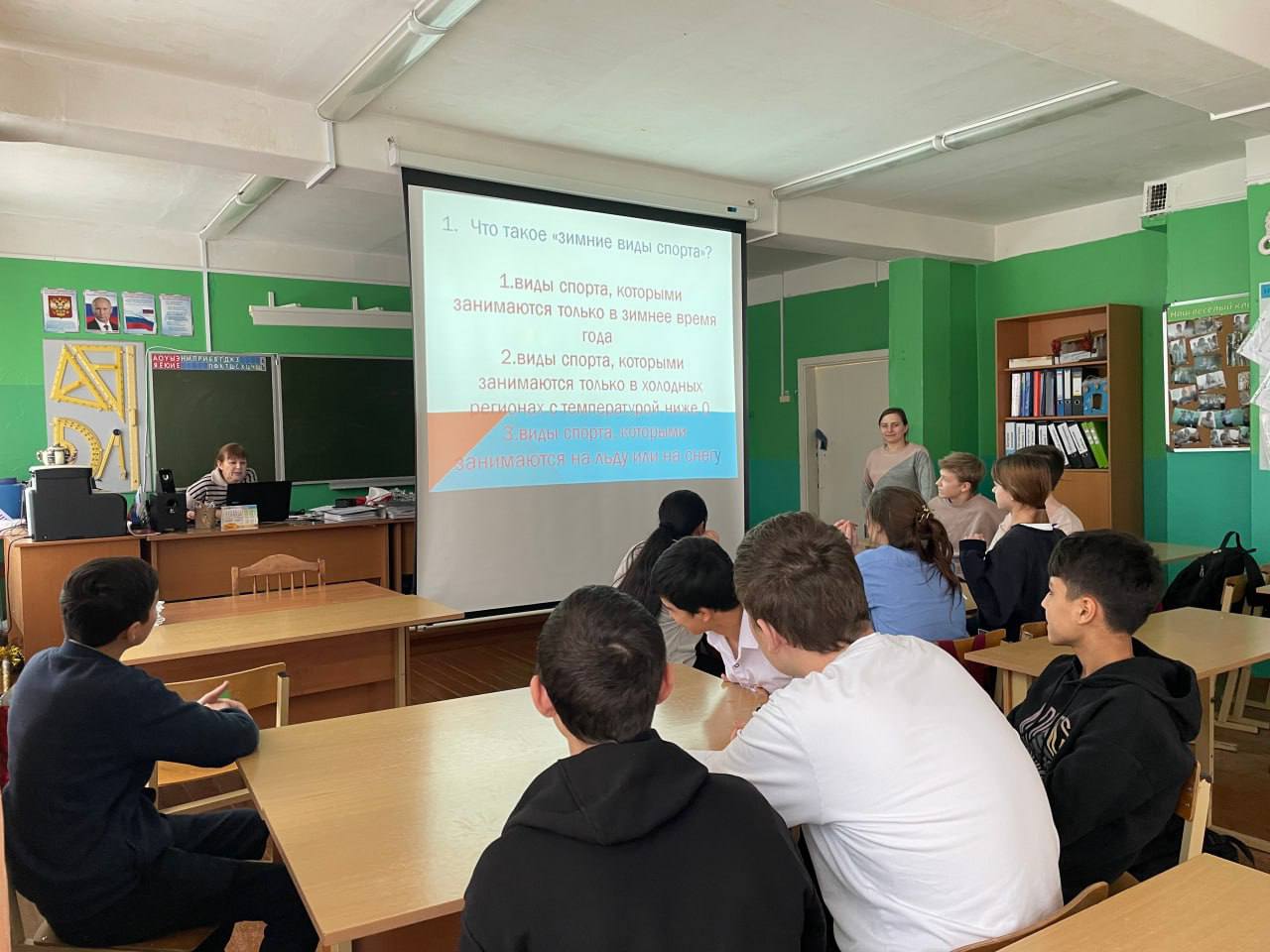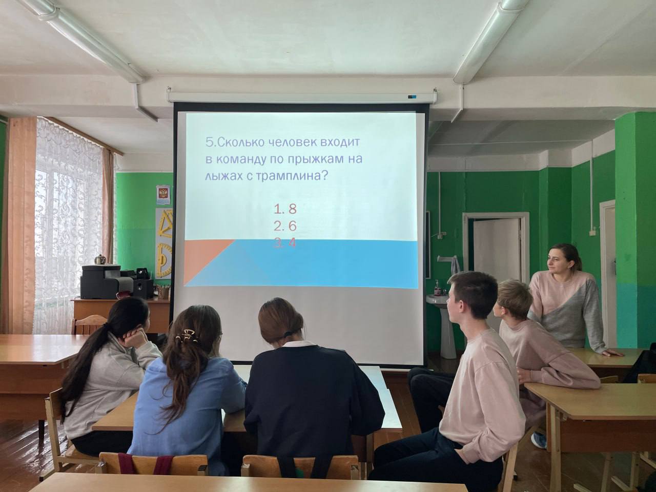 🗓23 января сотрудники молодёжного центра «Семёновский» Комплексного молодёжного центра «Сфера» провели увлекательную квиз – игру «Зимние виды спорта» для учеников 8В класса Рогачевской школы села.