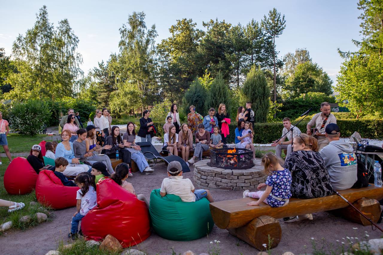 🔥 Молодежь, школьники, студенты и жители города собрались вокруг костра, чтобы поделиться с дмитровчанами своими музыкальными талантами.