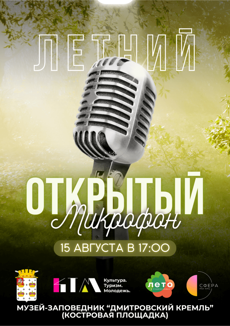 🎙️ Проведи последний месяц лета нескучно! Приглашаем молодежь принять участие в полюбившемся дмитровчанами творческом проекте «Летний Открытый Микрофон»!