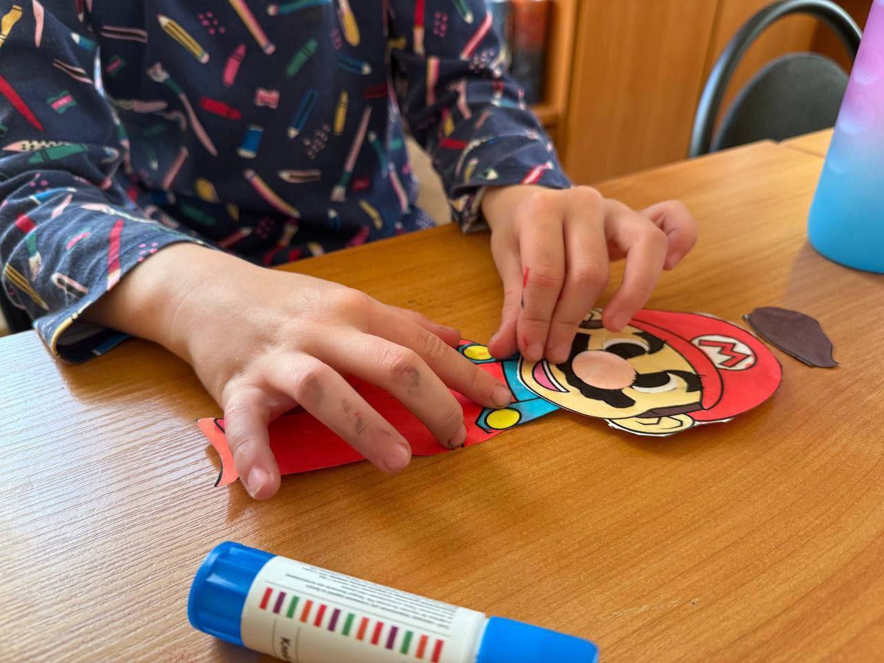 🎮Ребята с большим энтузиазмом раскрашивали заготовки, придавая каждому элементу яркие и насыщенные цвета. После этого все дружно принялись склеивать детали, и на наших глазах начал появляться любимый персонаж из мира видеоигр.