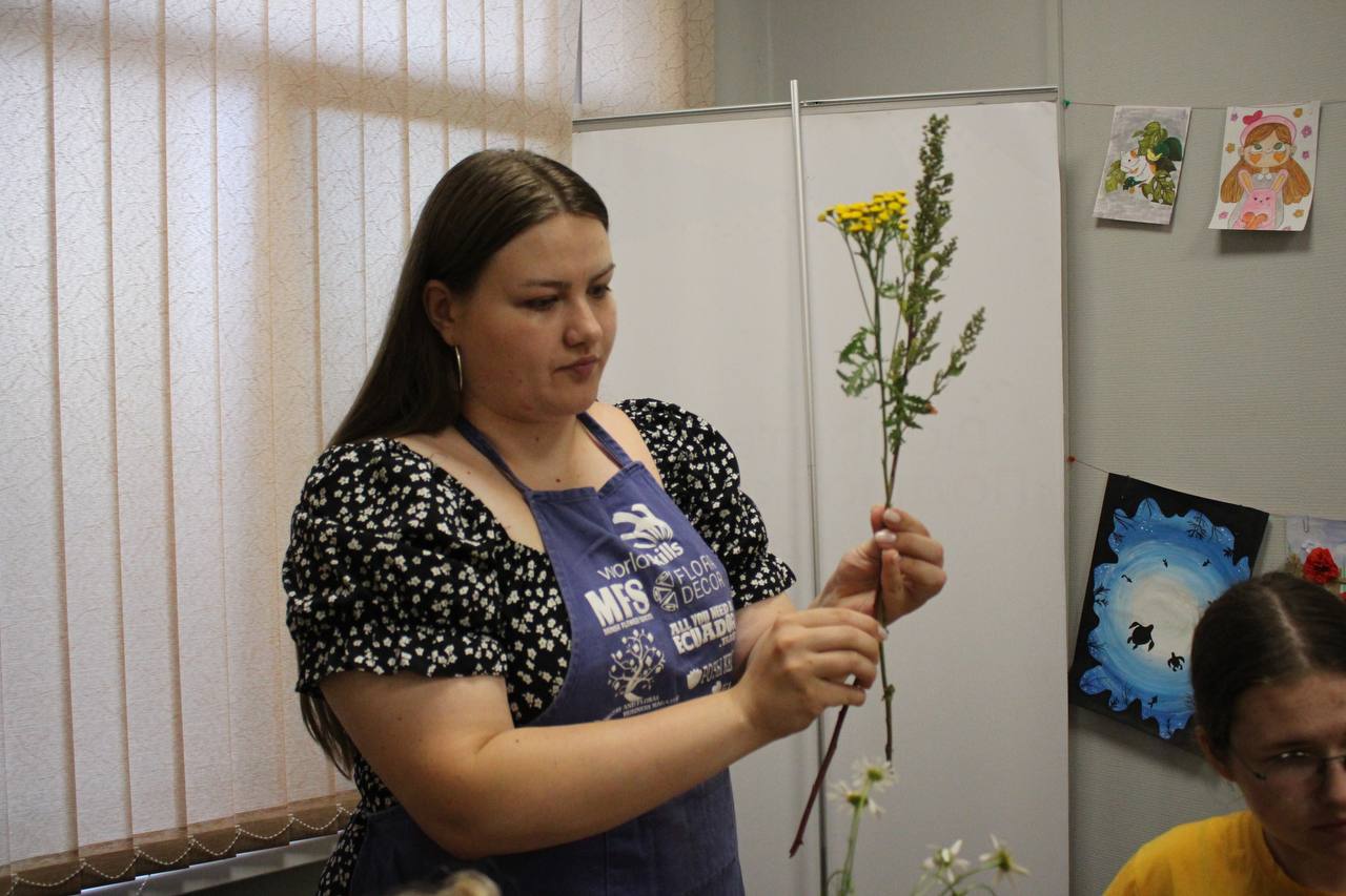 🪷 24 июля в творческой «АРТ-студии» Молодежного центра «квАРТал» прошел мастер-класс по флористике «Букет из полевых цветов».