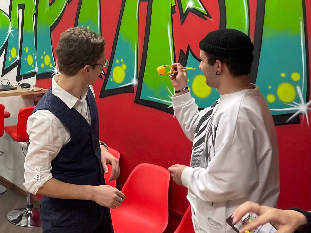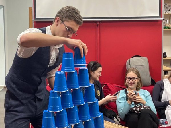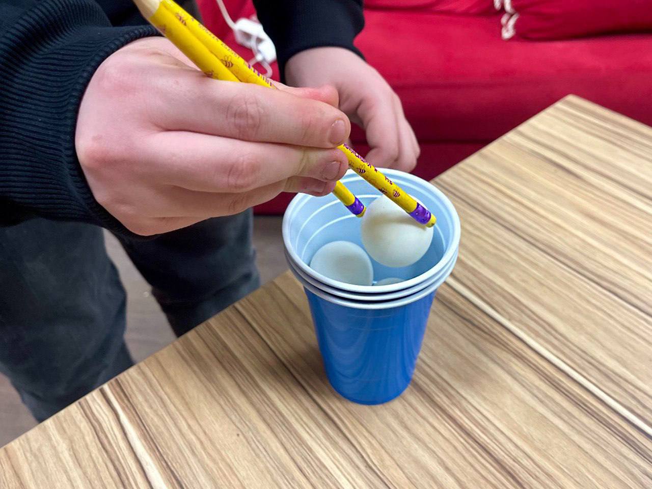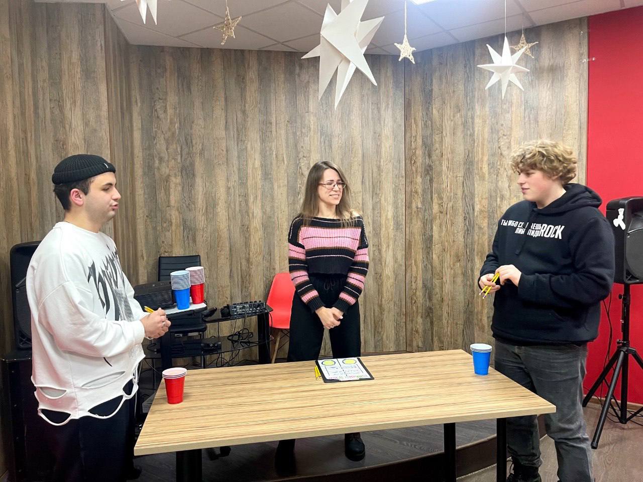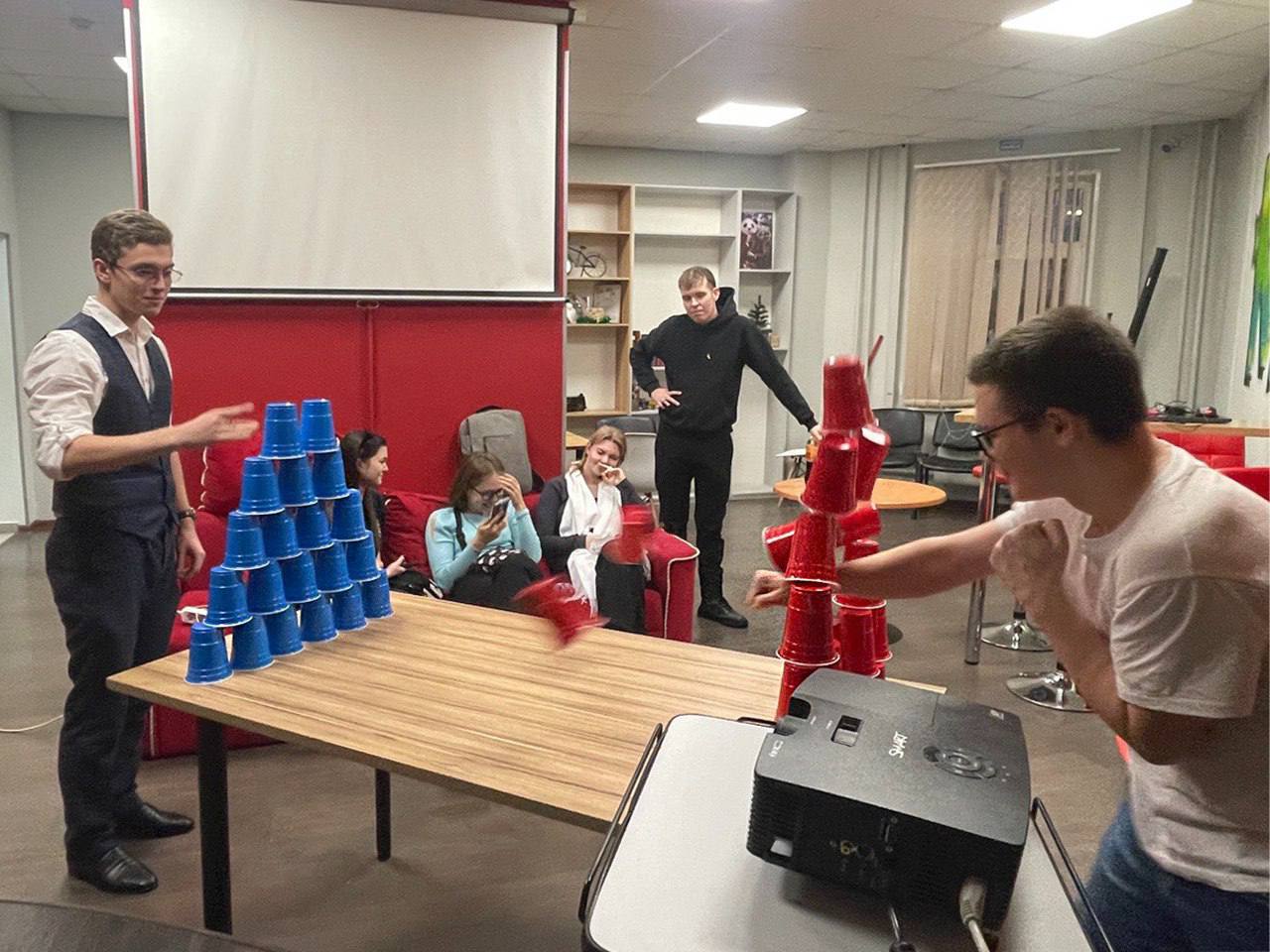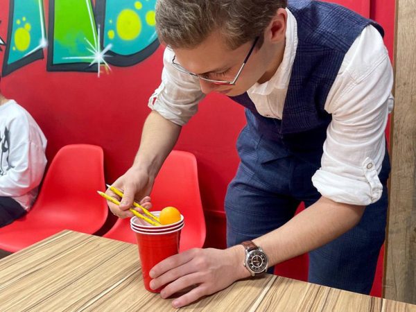 💥 За победу боролись две команды: «Паровозы» и «Крутые перцы». На выполнение задания – одна минута! За эту минуту нужно успеть быстрее противника построить высокую башню из стаканчиков или перенести несколько шариков на дальнее расстояние удерживая их с помощью карандашей, либо зажать в зубах спагетти и попытаться нанизать на неё пять макарон, не помогая себе руками или пройти другие испытания.