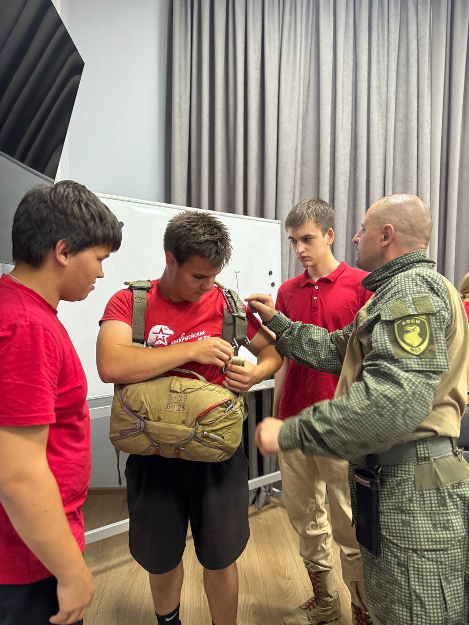 🎦 Ребята посмотрели фильм о применении парашютной технологии в различных сферах. Для юнармейцев инструкторами были продемонстрированы различные виды парашютов и рассказано о их предназначении. Перед ребятами выступил главный инженер и конструктор производства парашютов, а также испытатель парашютных систем, производимых на предприятии. Опытными специалистами-инструкторами была проведена профориентационная беседа для молодёжи.