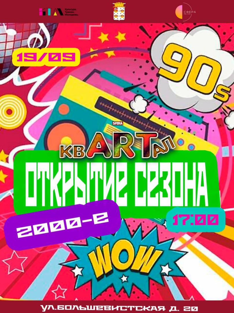 💥 Открываем сезон наших зажигательных «квАРТальных» вечеринок — приходи сам, приводи друзей, и вместе зацените наше «Открытие сезона» в стиле 90-х и 2000-х!
