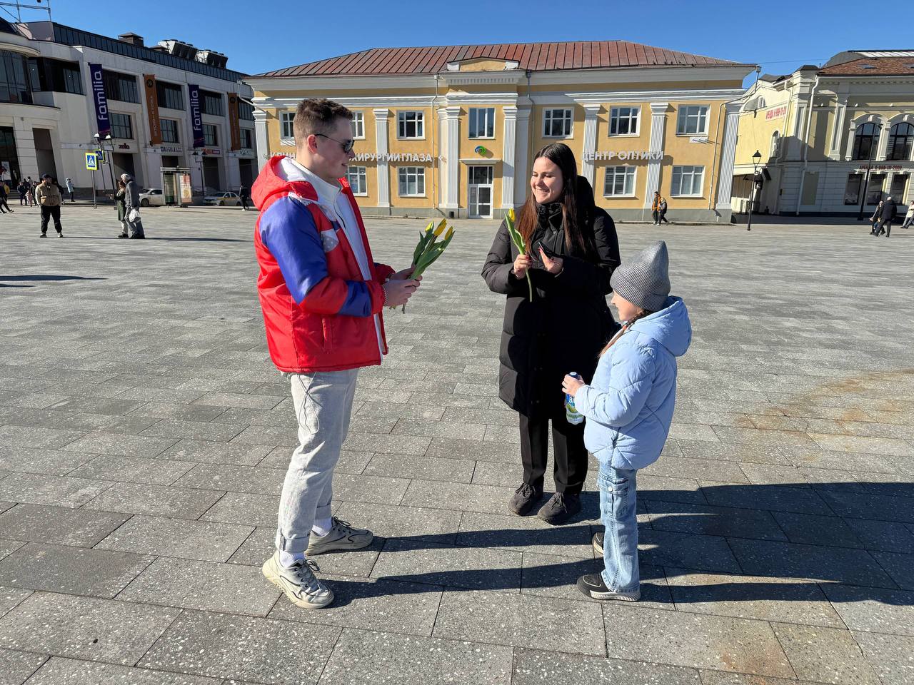 🌺Волонтеры вышли на улицы родного города, чтобы поздравить женщин Дмитровского муниципального округа с Международным женским днем!
