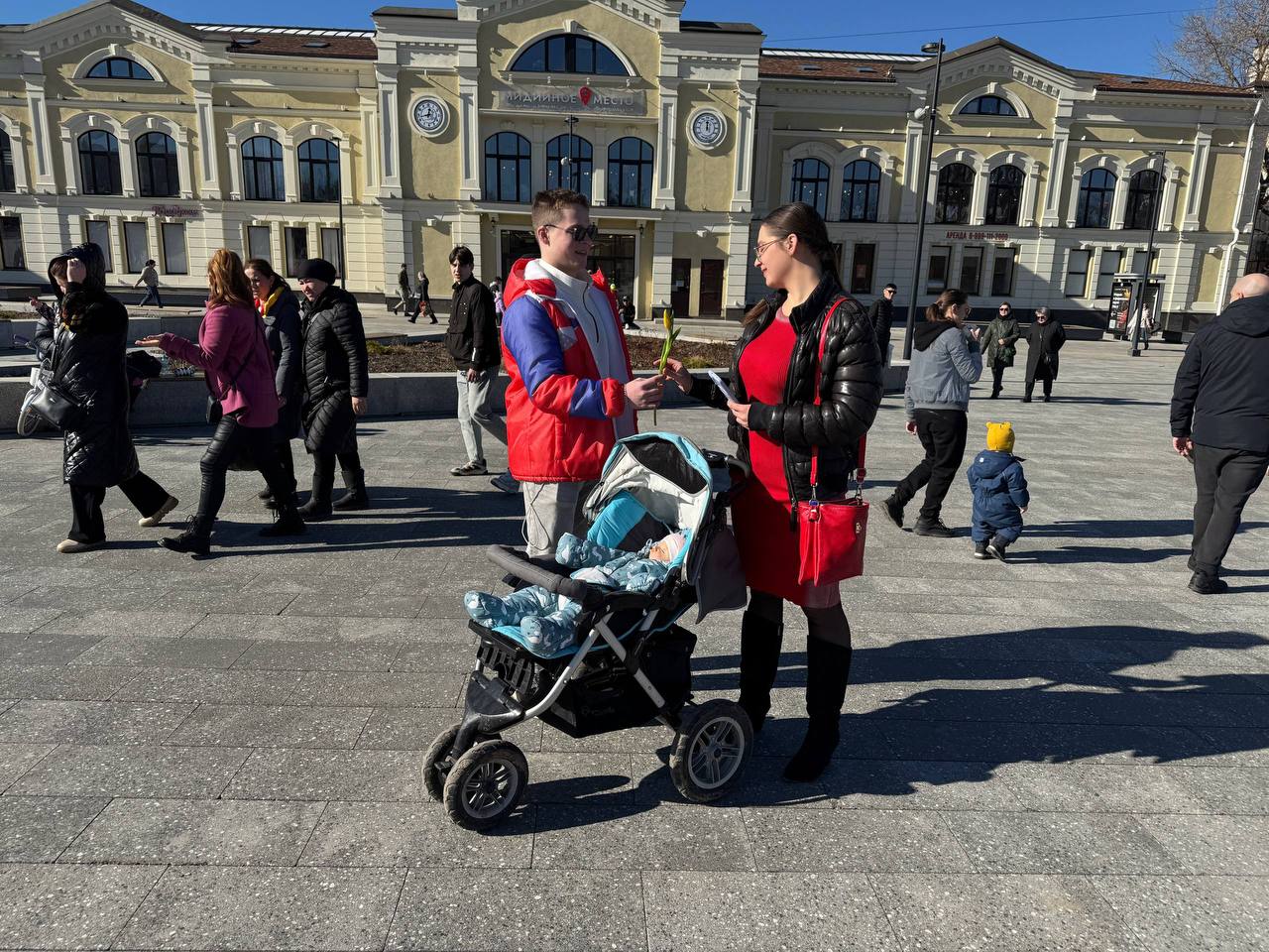 💐 Яркие цветы, теплые улыбки, самые добрые слова в адрес наших прекрасных женщин, девушек, девочек – дарят Волонтеры Подмосковья на улицах Дмитрова!