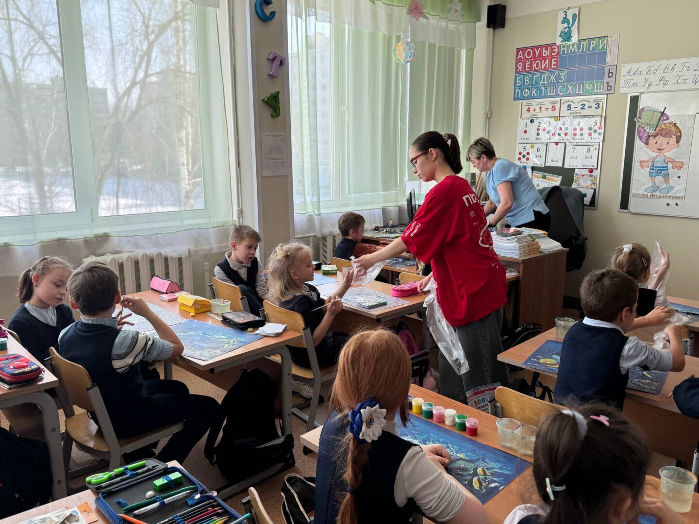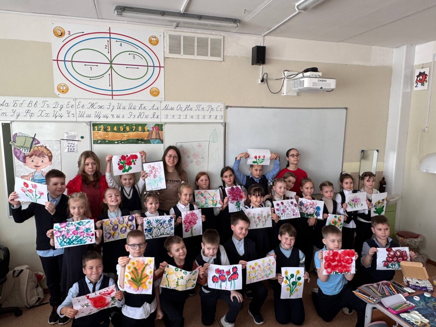 💐 Сотрудники Молодежного центра «квАРТал» совместно с Волонтёрами Подмосковья и Движением первых провели увлекательный скетчинг на тему «Весенний букет» для учеников Дмитровской школы №10.