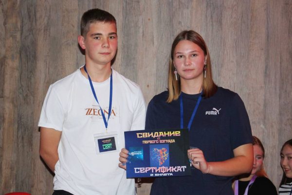 💞 Завершающий раунд выдал все взаимные симпатии участников — по итогам всей игры победителями стали две новые пары! Они стали обладателями подарочных сертификатов: билеты в кино от Комплексного молодежного центра «Сфера» и романтический ужин на двоих от нашего спонсора «Гриль-Бар Б&M»!