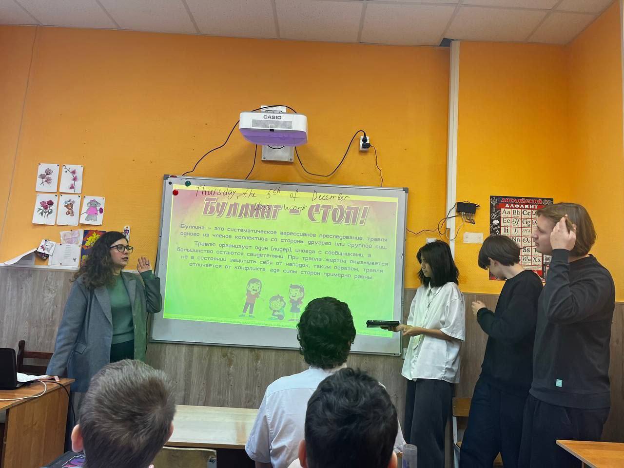 🙅 Для старшеклассников из Дмитровской школы № 2 сотрудники Молодёжного центра «квАРТал» Комплексного молодёжного центра «Сфера» провели урок-тренинг «Буллинг-стоп!».