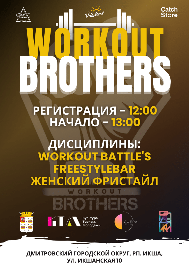 🎉 5 октября в Молодёжном центре «Родники» Комплексного молодёжного центра «Сфера» Дмитровского городского округа пройдёт турнир от команды WORKOUT BROTHERS, посвященный Дню Подмосковья!
