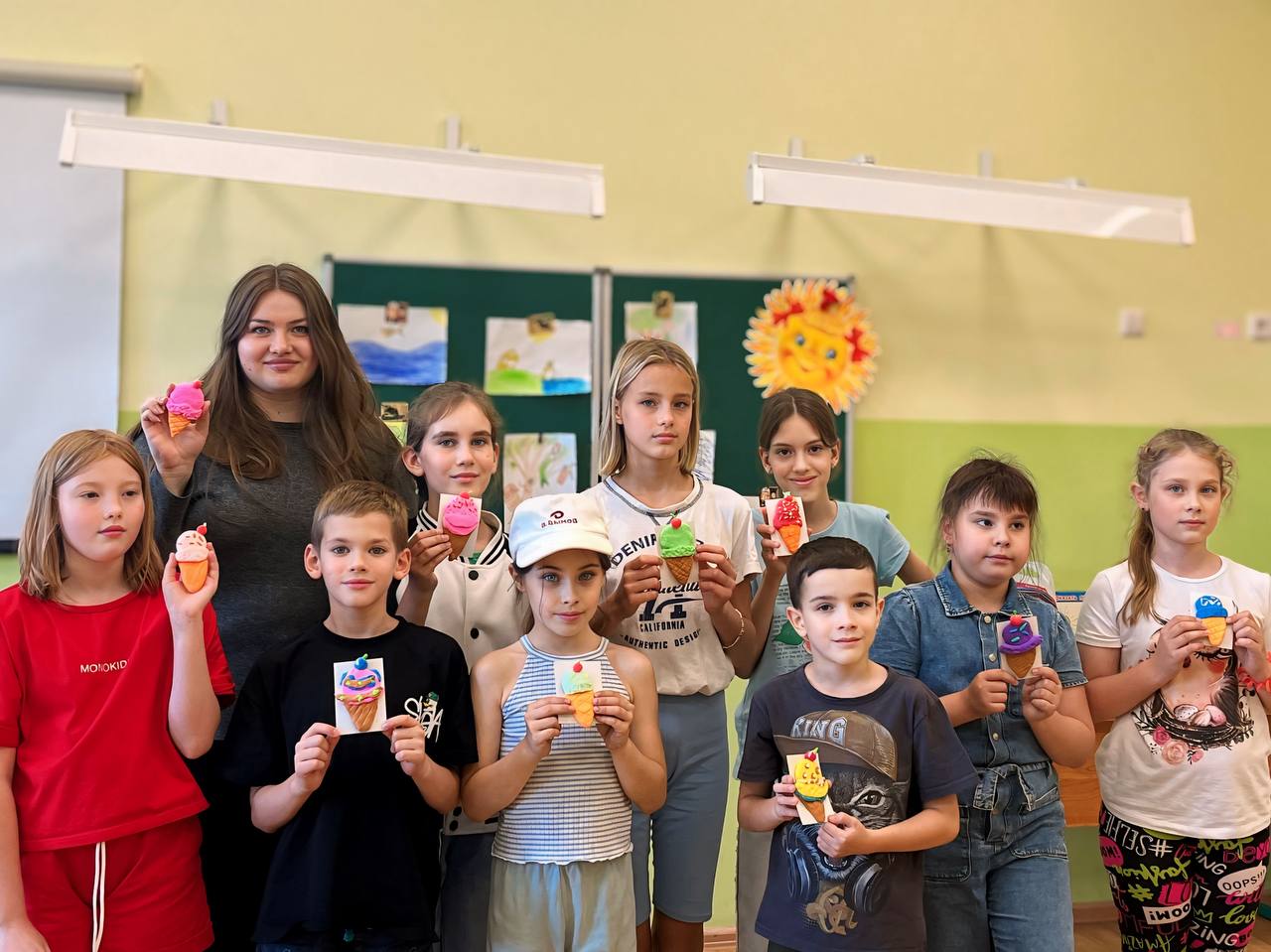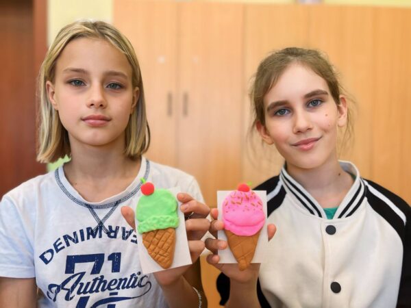 🍦 Сезон мороженого в самом разгаре! Ребята с помощью воздушного пластилина слепили разноцветные рожки с любимым лакомством. Жаль, что его нельзя съесть 😋