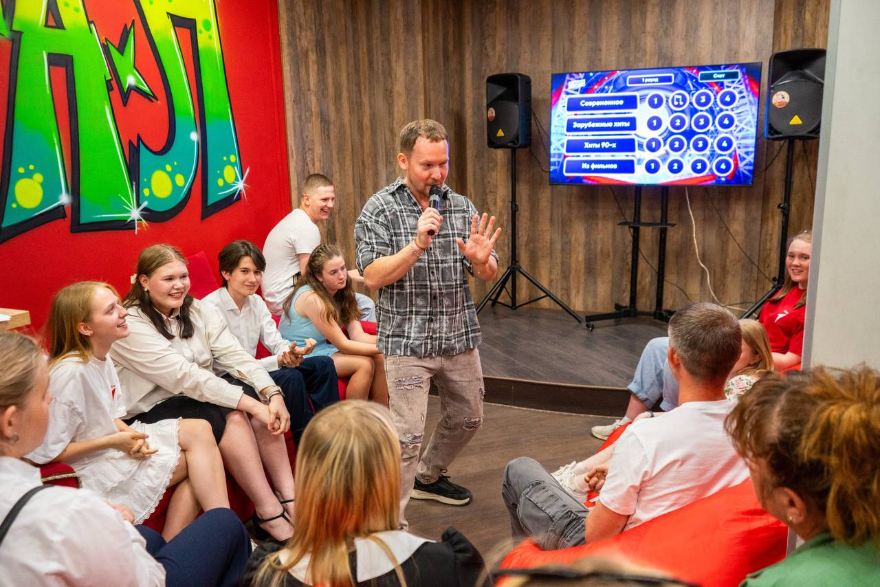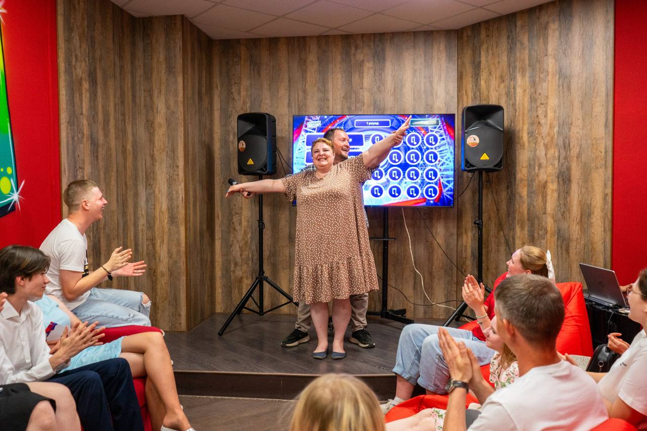 💪 Участники разделились на две команды: молодёжную – с названием «Такие маленькие», и команду взрослых – «Такие большие»! Каждая сторона стремилась доказать своё превосходство в знании хитов разных поколений.