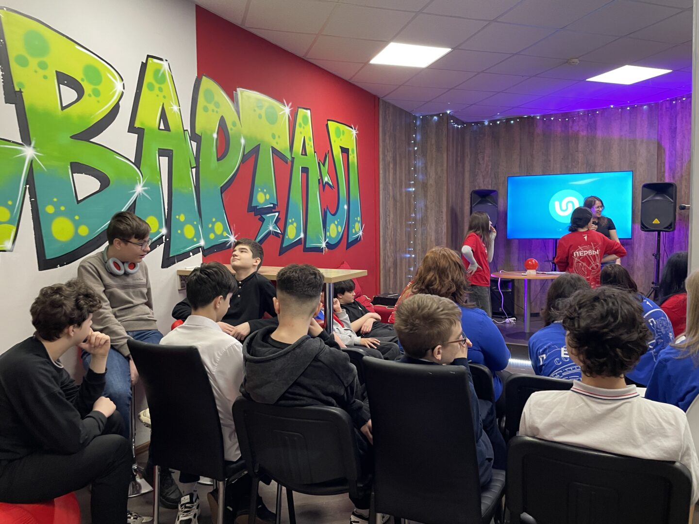 🤖 В первом раунде «Шазам» ребята угадывали песни, напеваемые искусственным интеллектом, что вызвало много смеха и азарта. Во втором раунде «Бумбокс» команды выбирали категории песен разных жанров и старались пропеть композицию как можно дольше.