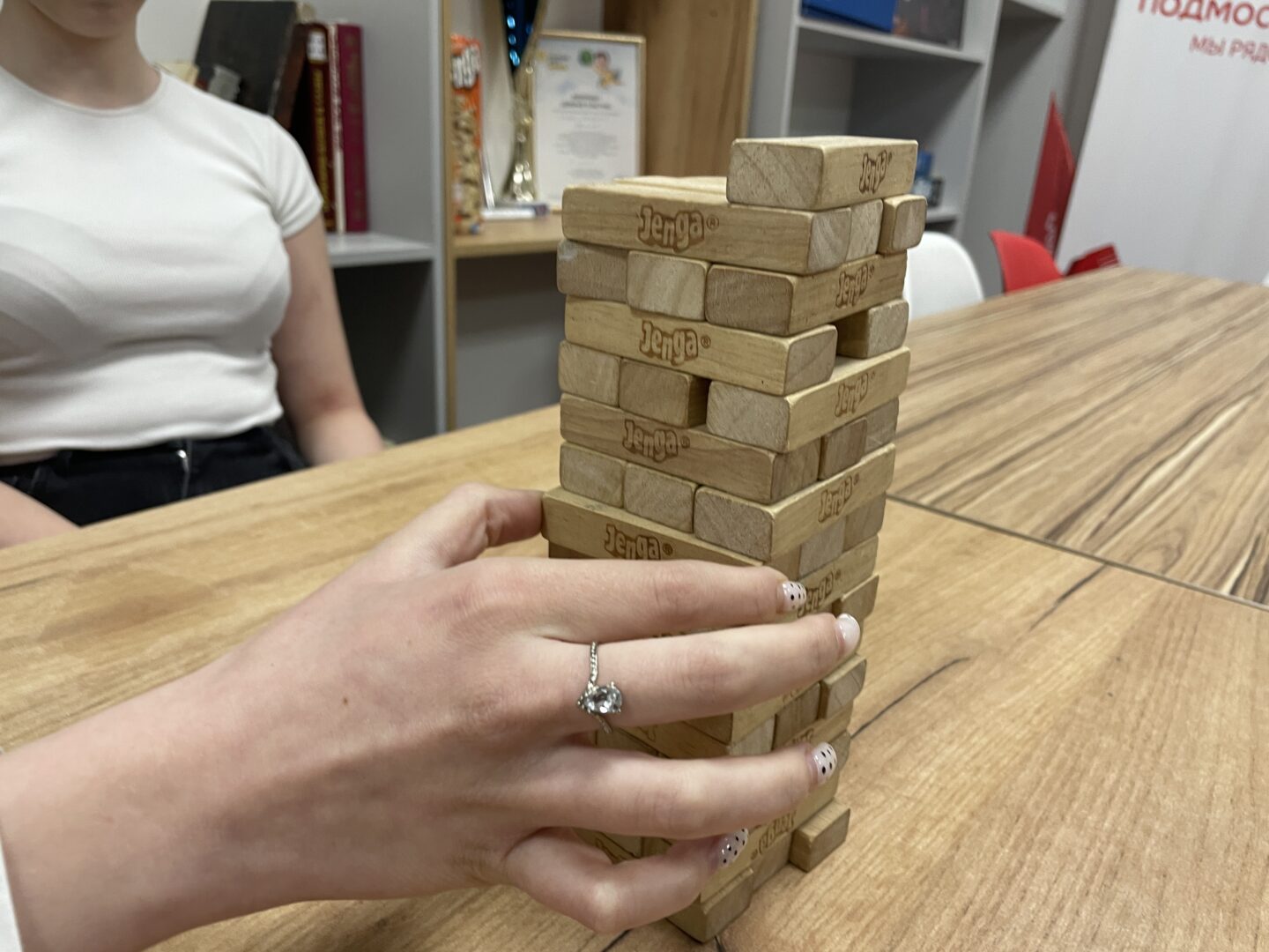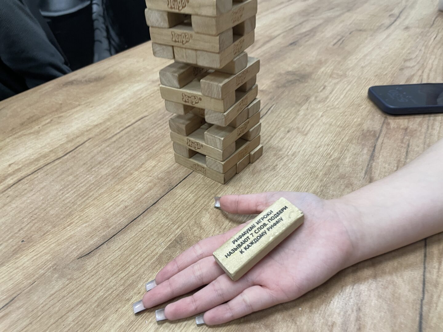 🏗️ Вытягивая деревянные брусочки из пирамиды, участникам нужно было очень аккуратно действовать, чтобы не разрушить всю конструкцию. Напряжение и азарт с каждой попыткой только росли!