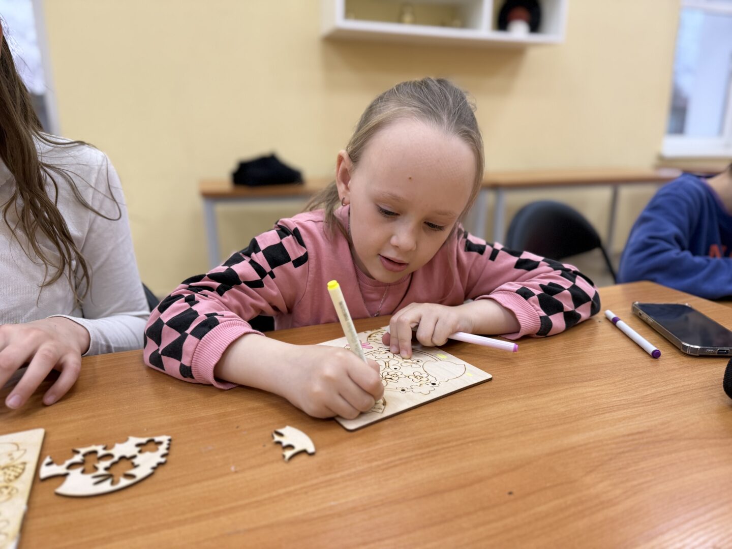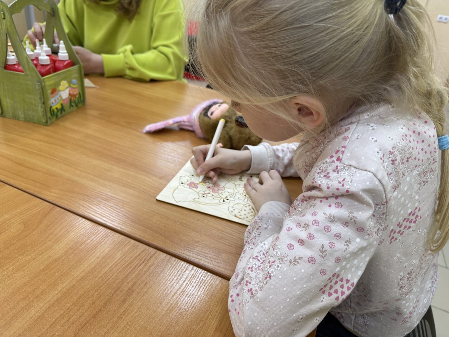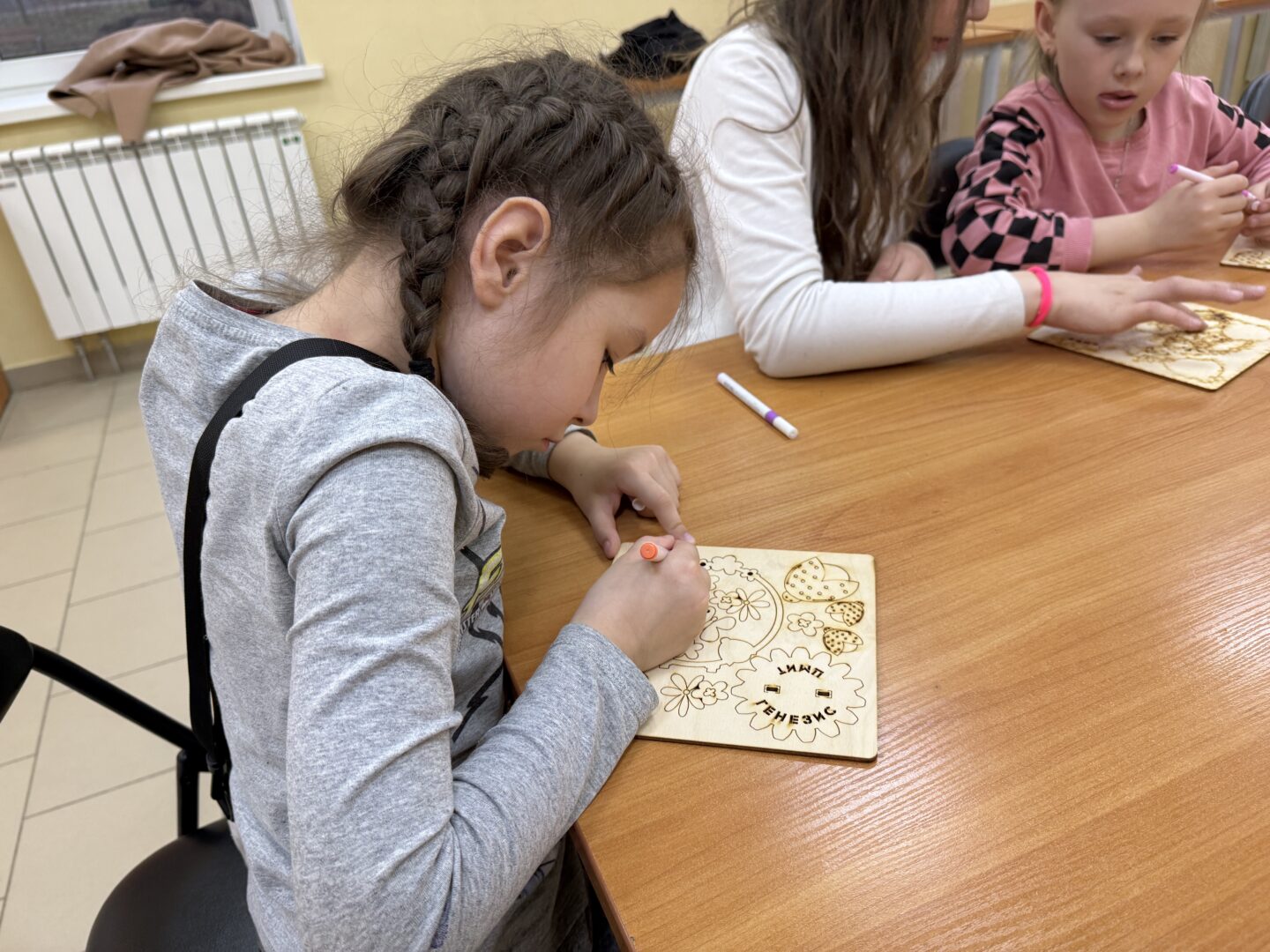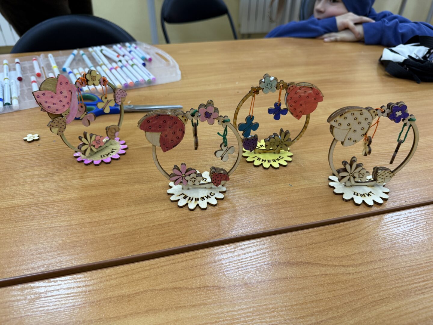 😍 На занятии студии «Генезис» участники создали из деревянной заготовки подставку с весенними мотивами.