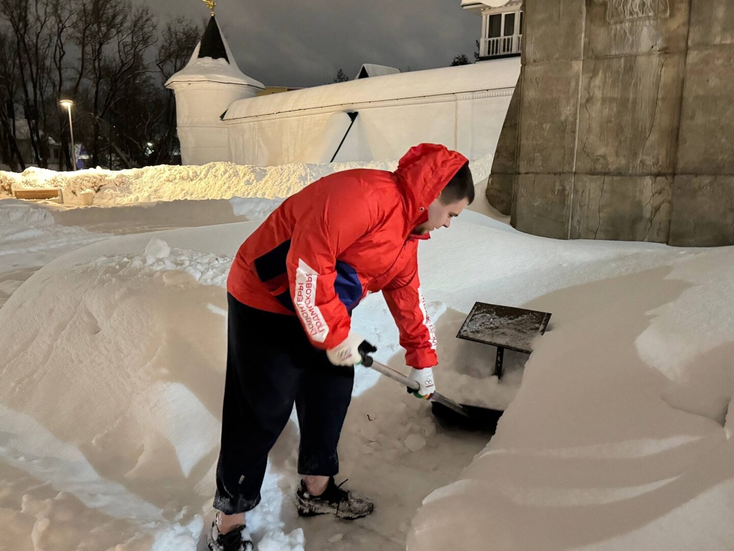 🙌🏻Участники очистили участок от снега. Каждый из нас понимает, как важно сохранять память о героях, которые служили своей стране, и поддерживать чистоту в общественных местах.