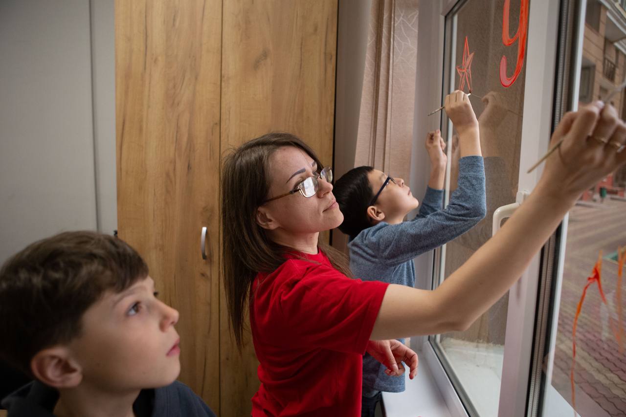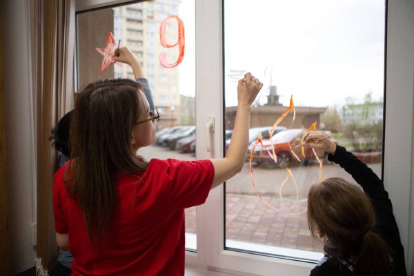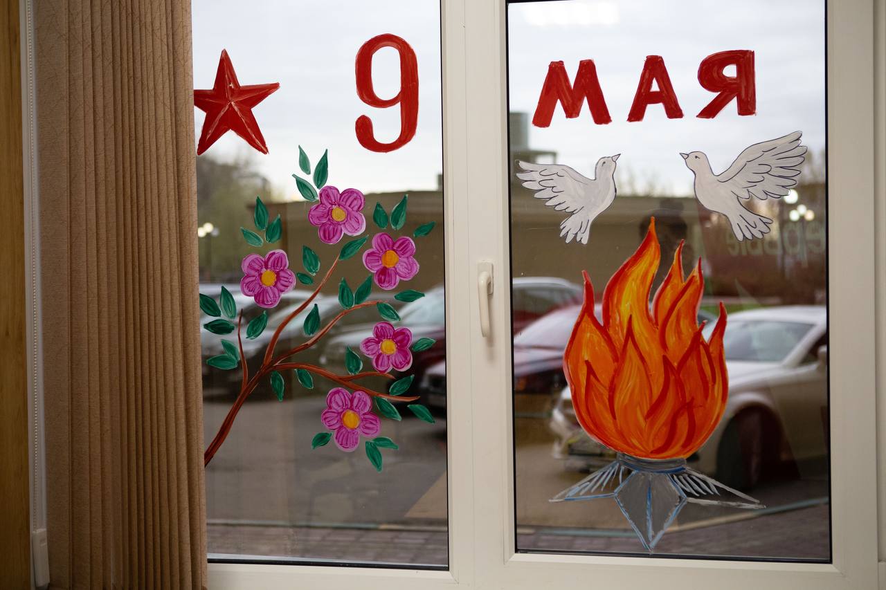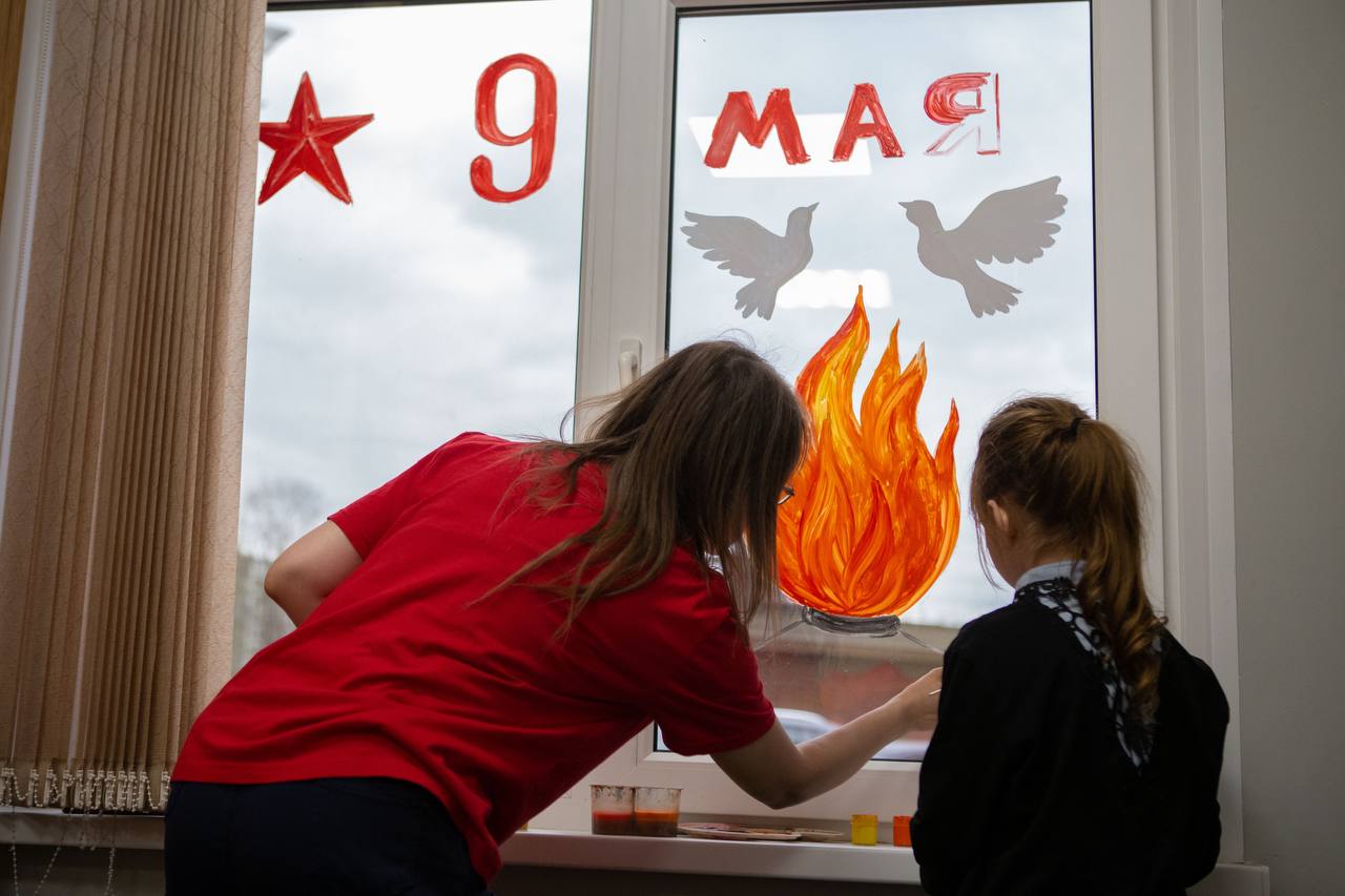 Участники Движения в преддверии празднования годовщины Победы в Великой Отечественной войне 1941–1945 гг. украсили окна символами Великой Победы. Так ребята отдают дань памяти героизму и смелости ветеранов и русских солдат.