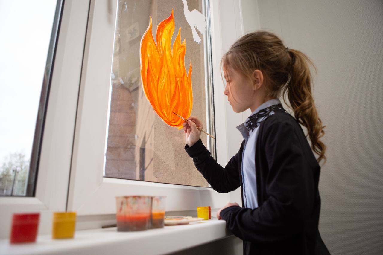🕊️Активисты Движения Первых из Молодежного центра «квАРТал» приняли участие во Всероссийской акции «Окна Победы».