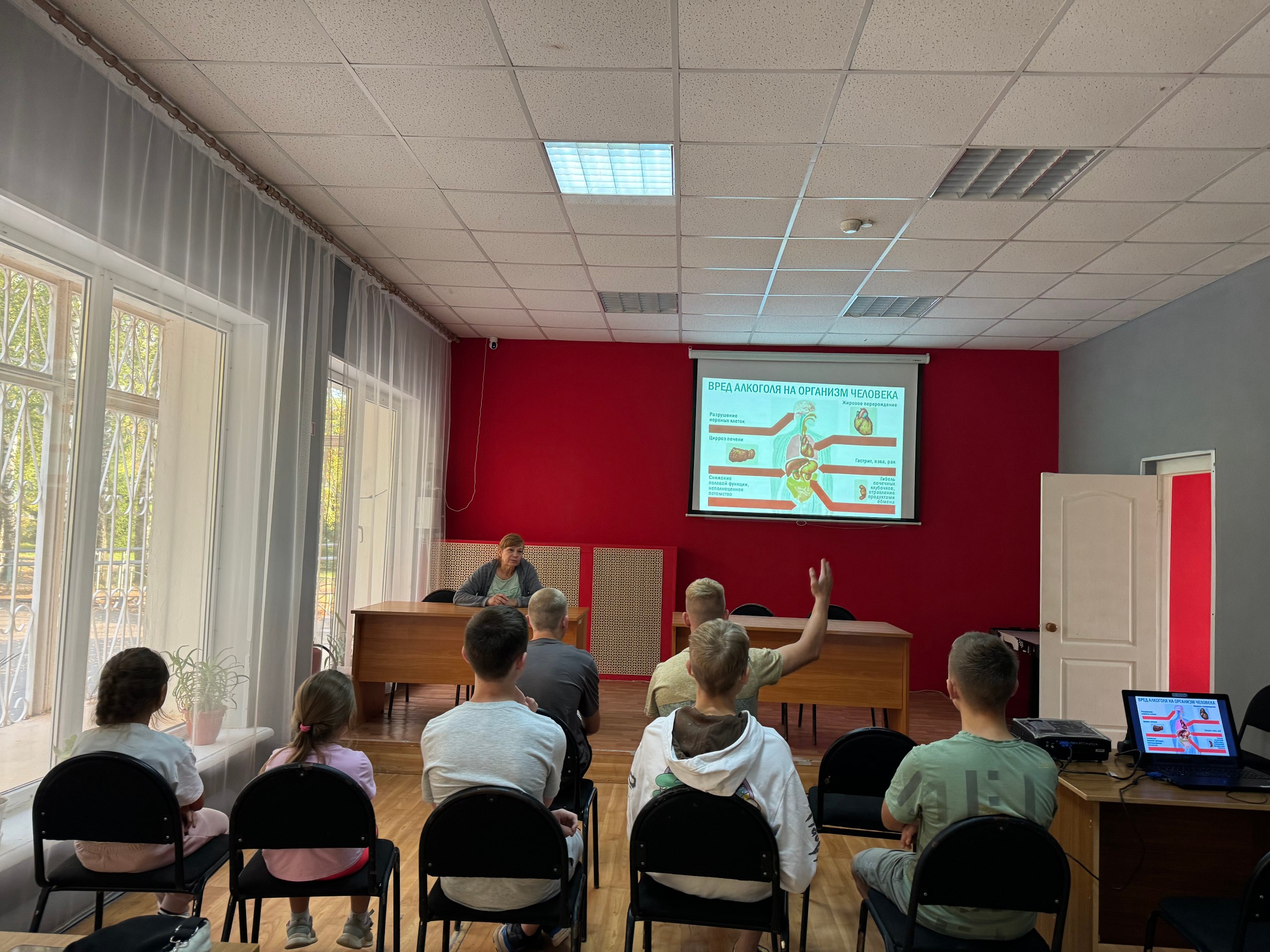 В ходе беседы участники узнали, что алкоголь – сильнейшее внутриклеточное ядовитое соединение, убивающее и разрушающее все системы жизнеобеспечения человеческого организма. Если этиловый спирт поступает в организм регулярно, то происходит развитие тяжелых заболеваний, затрагивающих практически все внутренние органы. Длительное употребление алкоголя вызывает (независимо от возраста): ишемию, стойкую потерю памяти; проблемы в работе ЦНС; гипертоническую болезнь; заболевания печени и почек; развитие психических заболеваний; ослабление иммунных сил организма; анормальную концентрацию сахара в крови; стойкое снижение работы репродуктивной системы; значительное сокращение продолжительности жизни. Этиловый спирт оказывает повреждающее влияние и на будущее потомство. При алкоголизме матери алкогольный синдром плода формируется у 43,5% детей, при алкоголизме обоих родителей доля детей с алкогольным синдромом плода возрастает до 62%.